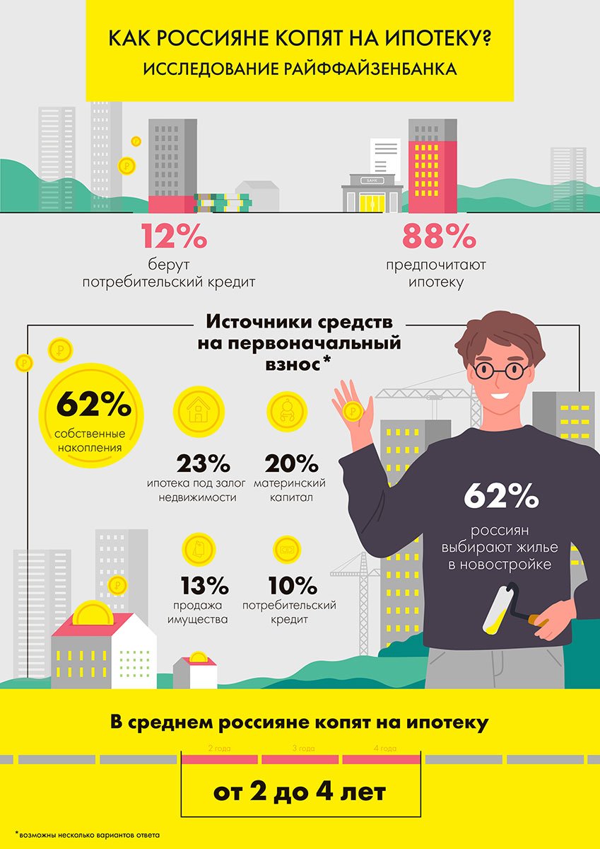 Райффайзенбанк выяснил, как россияне копят на первоначальный взнос по ипотеке и рассчитывают свои финансовые возможности. Анализ основан на данных опроса более двух тысяч человек из 17 крупных городов страны, включая Москву и