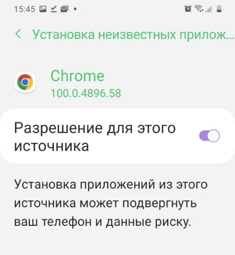 Разрешите установку приложения в настройках телефона и нажмите стрелку «Назад»