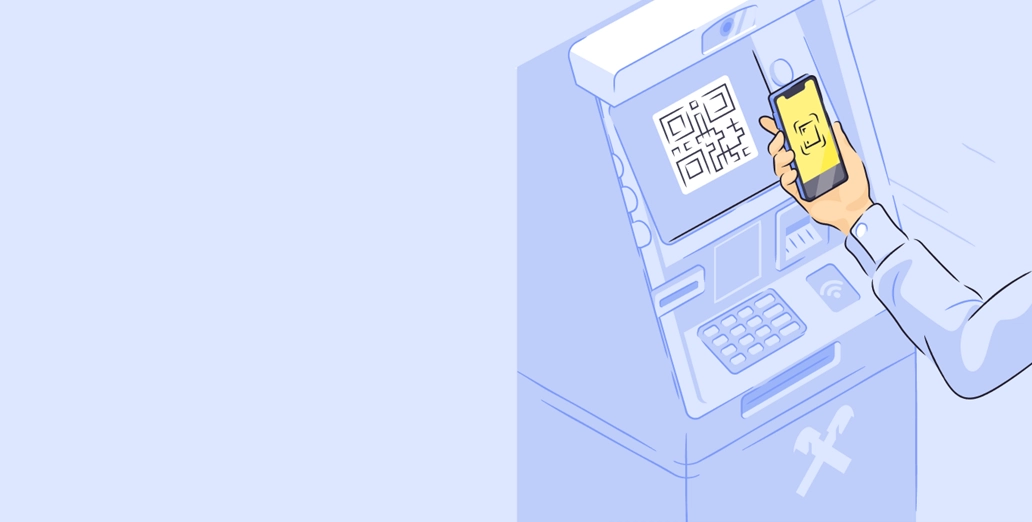 На экране банкомата нажмите на кнопку «Снять или пополнить по QR-коду»